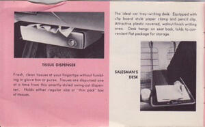 This is the original Buick Buyer Protection Plan with the first owner’s name and addy handwritten in - owner copy of the metal VIN plate still attached.Check out the Engineer Approved Accessories for 1965 Buick with items like an under-dash tissue dispenser, salesman desk and clothes rack.This is a rich piece of well-preserved American history.