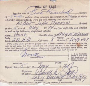 That same family friend, David Beck, officially became her owner on April 22, 1991 for a declared $1000 sale price. There is very little documentation of this 2 year period, but thanks to a valid telephone number left on this owner’s for sale listing, I actually got to speak with David Beck and Albert’s son, Chuck. I called asking for Albert himself, however he has passed away (rest in peace). David and Chuck however, remember the Riviera and how much Albert loved it. David and Chuck are now in business together doing Rolls Royce / Bently conversions including engine swaps andbrake modifications. Because the sales listing also listed the Riviera as “solid California car ... has new motor, never been fired”, I assume these men did the engine swap themselves before resale. Thank goodness for good record keeping.